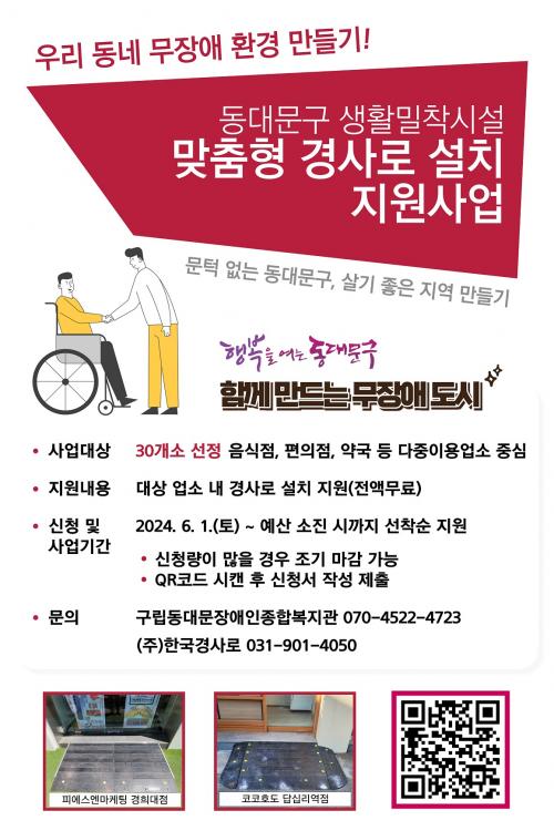 [½Åµ¿¾Æ¹æ¼Û µ¿´ë¹®±¸=À̽ŵ¿±âÀÚ]¼­¿ï µ¿´ë¹®±¸°¡ Àå¾ÖÀÎ, ³ëÀÎ µîÀÇ À̵¿ÆíÀÇ ÁõÁøÀ» À§ÇØ 6¿ùºÎÅÍ ¡®°æ»ç·Î ¼³Ä¡ Áö¿ø »ç¾÷¡¯À» ½ÃÀÛÇÑ´Ù°í 24ÀÏ ¹àÇû´Ù. ±¸´Â¡ºÀå¾ÖÀΡ¤³ëÀΡ¤ÀÓ»êºÎ µîÀÇ ÆíÀÇÁõÁø º¸Àå¿¡ °üÇÑ ¹ý·ü¡»¿¡ µû¸¥ ÆíÀǽü³ ¼³Ä¡ Àǹ«´ë»óÀÌ ¾Æ´Ñ, ¼Ò¡¦