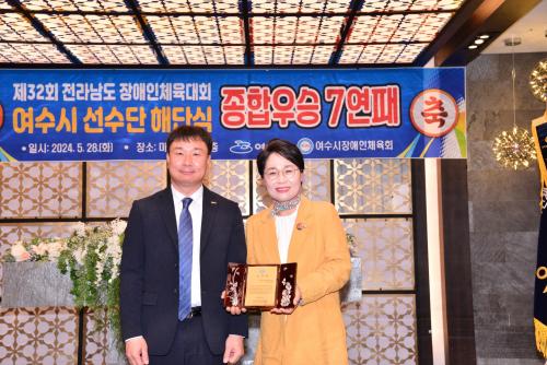 [½Åµ¿¾Æ¹æ¼Û¿©¼ö=±è±â³² ±âÀÚ] ¿©¼ö½Ã Àå¾ÖÀÎüÀ°È¸(°­¿ì¿¬ ¼ö¼® ºÎȸÀå)´Â Á¦32ȸ Àü¶ó³²µµ Àå¾ÖÀÎüÀ°´ëȸ ÇØ´Ü½Ä¿¡¼­ ¿©¼ö½ÃÀÇȸ ¹Î´öÈñ ½ÃÀÇ¿øÀÌ È¯°æº¹ÁöÀ§¿øÈ¸ À§¿øÀåÀ¸·Î ÀçÀÓÇÏ´Â µ¿¾È ¼Ò¿Ü°èÃþÀ» À§ÇÑ ´Ù¾çÇÑ ½ÃÃ¥ ÃßÁø¿¡ °ü½ÉÀ» °¡Áö°í ¿©¼ö½Ã Àå¾ÖÀÎüÀ°¡¦
