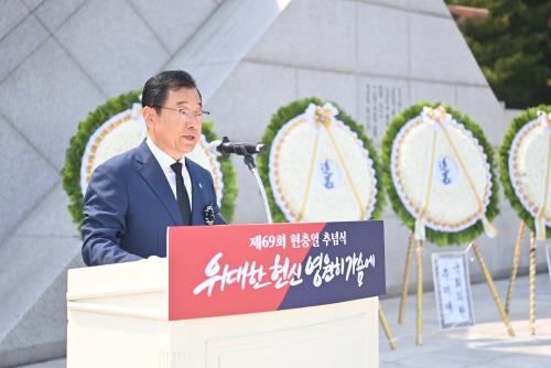 [½Åµ¿¾Æ¹æ¼Û Çϳ²½Ã=À̽ŵ¿±âÀÚ]ÀÌÇöÀç Çϳ²½ÃÀåÀº 6ÀÏ °Ë´Ü»ê ÇöÃæÅ¾¿¡¼­ ¿­¸° ¡®Á¦69ȸ ÇöÃæÀÏ Ãß³ä½Ä¡¯¿¡¼­ ¡°Á¶±¹À» À§ÇØ ¿Â¸öÀ» ´øÁö½Å ¼ø±º¼±¿­°ú È£±¹¿µ·ÉÀÌ Á¸°æ¹Þ°í, ±× ÈļյéÀÌ ¸í¿¹¿Í ±àÁö¸¦ °®°í »ì¾Æ°¥ ¼ö ÀÖµµ·Ï ¿¹¿ìÇϰڴ١±¶ó°í ¸»Çß´Ù. À̳¯ ÇöÃæÀÏ¡¦