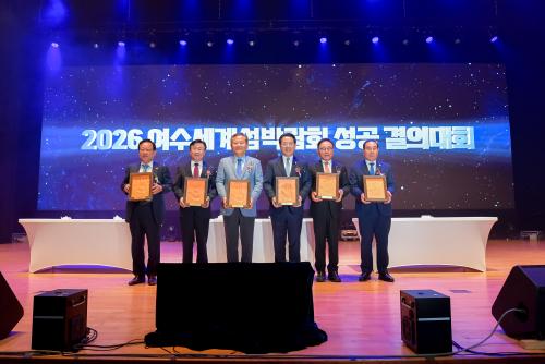 [½Åµ¿¾Æ¹æ¼Û¿©¼ö=±è±â³² ±âÀÚ] Àç´Ü¹ýÀÎ 2026¿©¼ö¼¼°è¼¶¹Ú¶÷ȸ Á¶Á÷À§¿øÈ¸(°øµ¿À§¿øÀå ±è¿µ·Ï Àü³²µµÁö»ç, Á¤±â¸í ¿©¼ö½ÃÀå, ¹Ú¼ö°ü ¢ßYC-TEC ȸÀå)°¡ 11ÀÏ ¿©¼ö¼¼°è¹Ú¶÷ȸÀå ¿¢½ºÆ÷Ȧ¿¡¼­ ¡®¹Ú¼ö°ü Á¶Á÷À§¿øÀå ÃëÀÓ ¹× 2026¿©¼ö¼¼°è¼¶¹Ú¶÷ȸ ¼º°ø °áÀÇ´ëȸ¡¯¸¦ °³ÃÖ¡¦