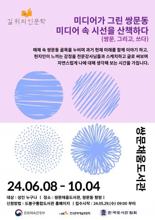 [½Åµ¿¾Æ¹æ¼Û µµºÀ±¸=À̽ŵ¿±âÀÚ]µµºÀ±¸ µµºÀ¹®È­Àç´Ü ½Ö¹®Ã¤¿òµµ¼­°üÀº 5¿ù ¹®È­Ã¼À°°ü±¤ºÎ°¡ ÁÖÃÖÇϰí Çѱ¹¹®È­¿¹¼úÀ§¿øÈ¸¿Í Çѱ¹µµ¼­°üÇùȸ°¡ °øµ¿ ÁÖ°üÇÏ´Â ¡®±æ À§ÀÇ Àι®ÇС¯ °ø¸ð»ç¾÷¿¡ ¼±Á¤µÆ´Ù°í ¹àÇû´Ù. ¡®±æ À§ÀÇ Àι®ÇС¯Àº °­¿¬°ú üÇè, Áö¿ª Àι®ÀÚ¿ø Ž¡¦