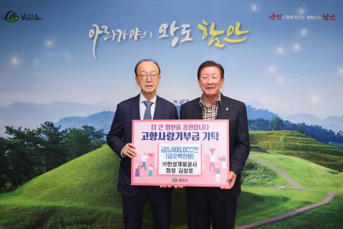 [½Åµ¿¾Æ¹æ¼Û ÇԾȱº=À̽ŵ¿±âÀÚ]ÇԾȱºÀº 14ÀÏ ±èÇØ½Ã ¼ÒÀç ¢ßÇѼº°³¹ß°ø»ç ±èâȣ ȸÀåÀÌ ÇԾȱº¿¡ °íÇâ»ç¶û±âºÎ±Ý ÃÖ°í¾×ÀÎ 500¸¸ ¿øÀ» ±âŹÇß´Ù°í ¹àÇû´Ù. Ä¥¼­¸é ¹«¸ª¸¶À»ÀÌ ¿Ü°¡ÀÎ ±èâȣ ȸÀåÀº °Ç¹° ¹× Åä¸ñ¿£Áö´Ï¾î¸µ ±â¾÷ÀÎ ¢ßÇѼº°³¹ß°ø»ç ȸÀå ¹× (ÇÕÀÚ)¡¦