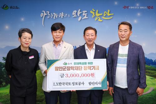 LXÇѱ¹±¹ÅäÁ¤º¸°ø»ç ÇÔ¾ÈÁö»ç Á÷¿øµé, ÇԾȱºÀåÇÐÀç´Ü¿¡ ÀåÇбâ±Ý 300¸¸ ¿ø ±âŹ
