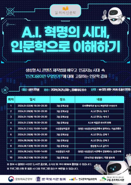 ÀºÆò±¸ Àº¶ß¶ôµµ¼­°ü, 2024³â ±æ À§ÀÇ Àι®ÇÐ ¡®A.I. Çõ¸íÀÇ ½Ã´ë, Àι®ÇÐÀ¸·Î ÀÌÇØÇϱ⡯ ¿î¿µ