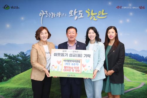 [½Åµ¿¾Æ¹æ¼Û ÇԾȱº=À̽ŵ¿±âÀÚ]ÇԾȱºÀº ¾Æ½Ã¶û·ÎŸ¸®Å¬·´(ȸÀå À¯ÃáÀÚ)¿¡¼­ 21ÀÏ ±º³» ¾î·Á¿î ÀÌ¿ôÀ» À§ÇØ ½Ò(10kg) 60Æ÷(200¸¸ ¿ø »ó´ç)¸¦ ±âŹÇß´Ù°í ¹àÇû´Ù. À̳¯ ±âŹ½Ä¿¡´Â Á¶±ÙÁ¦ ÇԾȱº¼ö¿Í ¾Æ½Ã¶û·ÎŸ¸®Å¬·´ Á¦26´ë À¯ÃáÀÚ È¸Àå ¿Ü °ü°èÀÚµéÀÌ Âü¼®ÇßÀ¸¸ç¡¦