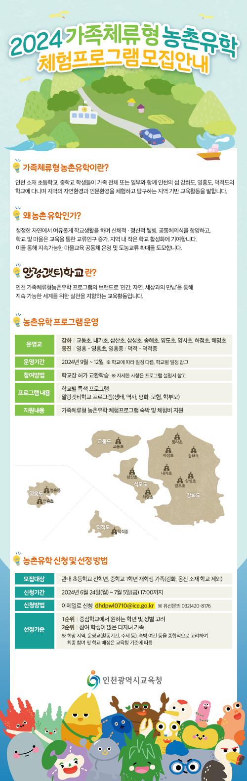 [½Åµ¿¾Æ¹æ¼Û ÀÎõ= À±¹Î½Ä±âÀÚ]ÀÎõ±¤¿ª½Ã±³À°Ã»(±³À°°¨ µµ¼ºÈÆ)Àº 2024Çг⵵ °¡Á· ü·ùÇü ³óÃÌ À¯ÇРüÇèÇÁ·Î±×·¥ ¡®¸»¶û°¹Æ¼Çб³¡¯ Âü¿© °¡Á·À» 6¿ù 24ÀϺÎÅÍ 7¿ù 5ÀϱîÁö 2ÁÖ°£ ¸ðÁýÇÑ´Ù. ¡®¸»¶û°¹Æ¼Çб³¡¯´Â µµ½Ã ÇлýÀÌ ÀÏÁ¤ ±â°£ ³ó¾îÃÌÁö¿ª Çб³¿¡ ´Ù´Ï¸ç, ¡¦