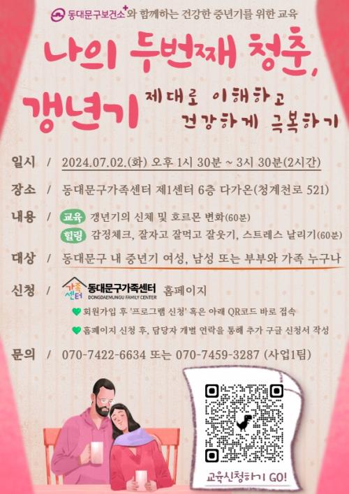 [½Åµ¿¾Æ¹æ¼Û µ¿´ë¹®±¸=À̽ŵ¿±âÀÚ]¼­¿ï µ¿´ë¹®±¸°¡ °»³â±â¸¦ °Þ´Â ´ç»çÀÚ¿Í ±× °¡Á·ÀÇ °Ç°­ÇÑ »î°ú ÇູÀ» À§ÇØ, ¿À´Â 7¿ù 2ÀÏ °»³â±â ¿©¼º °Ç°­°ü¸®¸¦ ÁÖÁ¦·Î ¡®°»³â±â, ³ªÀÇ µÎ ¹øÂ° ûÃᡯ Ư°­À» ¿¬´Ù. °Ç°­º¸Çè½É»çÆò°¡¿ø Åë°è¿¡ µû¸£¸é ¸Å³â 40¸¸ ¸í ÀÌ»óÀÌ °»¡¦