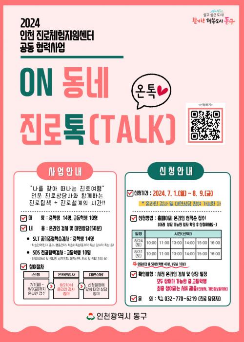 [½Åµ¿¾Æ¹æ¼Û ÀÎõ= À±¹Î½Ä±âÀÚ] ÀÎõ µ¿±¸(±¸Ã»Àå ±èÂùÁø)Àº ¡®ONµ¿³× Áø·ÎÅå(TALK)_¿ÂÅ塯 ÇÁ·Î±×·¥À» ¿î¿µÇÏ¿© °ü³» Áß¡¤°íµîÇлýµé¿¡ ´ëÇÑ Áø·Î°Ë»ç ¹× »ó´ã Áö¿øÀ» ÇÑ´Ù°í 4ÀÏ ¹àÇû´Ù. ¡®ONµ¿³× Áø·ÎÅå(TALK)_¿ÂÅ塯Àº ÀÎõ Áø·ÎüÇèÁö¿ø¼¾ÅÍ °øµ¿Çù·Â»ç¾÷À¸·Î ¡¦