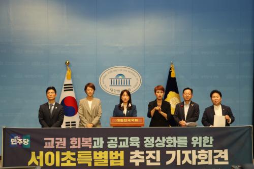 [½Åµ¿¾Æ¹æ¼Û = À±¹Î½Ä±âÀÚ] 7¿ù 5ÀÏ ¿ÀÀü 11½Ã 20ºÐ, ±¹È¸ ¼ÒÅë°ü¿¡¼­ ´õºÒ¾î¹ÎÁÖ´ç ±³À°À§¿øÈ¸ À§¿øµéÀº ±³±Ç ȸº¹°ú °ø±³À° Á¤»óÈ­¸¦ À§ÇÑ ¡®¼­ÀÌÃÊ Æ¯º°¹ý¡¯ ÀÔ¹ý ÃßÁøÀ» ¾Ë¸®´Â ±âÀÚȸ°ßÀ» ÁøÇàÇß´Ù. <@1> ´õºÒ¾î¹ÎÁÖ´ç ±³À°À§¿øÈ¸ À§¿øµéÀº ±³À°ÇöÀåÀÇ º¹ÇÕÀû¡¦
