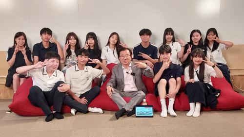 [½Åµ¿¾Æ¹æ¼Û=À̽ŵ¿±âÀÚ]ÀÌÇöÀç Çϳ²½ÃÀåÀÌ Áö³­ 15ÀÏ Çϳ²°íµîÇб³¸¦ ¹æ¹®ÇØ Çлýµé°ú ÇÔ²² ¼¼´ë¸¦ ¶Ù¾î³Ñ¾î °ø°¨ÇÏ°í ¼ÒÅëÇÏ´Â Èú¸µÅäÅ©ÀÇ ½Ã°£À» °¡Á³´Ù. ÀÌ ½ÃÀåÀÇ À̳¯ Çϳ²°í ¹æ¹®Àº ÀÌ ½ÃÀå°ú Çϳ²°í Çлýµé°úÀÇ ´ë´ã°úÁ¤À» ¿µ»óÄÜÅÙÃ÷·Î Á¦ÀÛÇÏ°í ½Í´Ù´Â ÇÏ¡¦