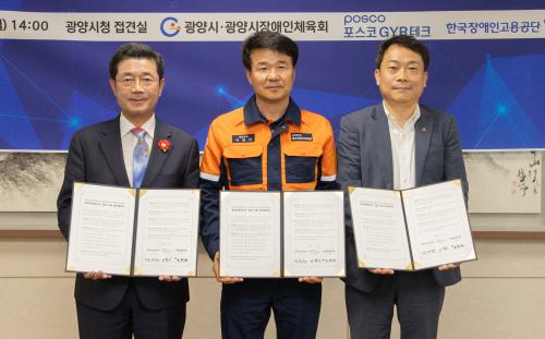 [½Åµ¿¾Æ¹æ¼Û±¤¾ç=¹Ú±¤¿Á±âÀÚ] ±¤¾ç½Ã´Â ¿À´Ã(22ÀÏ) ±¤¾ç½Ãû Á¢°ß½Ç¿¡¼­ ±¤¾ç½ÃÀå¾ÖÀÎüÀ°È¸(ȸÀå Á¤ÀÎÈ­), Æ÷½ºÄÚGYRÅ×Å©(´ëÇ¥ÀÌ»ç ÀÌÂù±â), Çѱ¹Àå¾ÖÀΰí¿ë°ø´Ü Àü³²Áö»ç(Áö»çÀå ÃÖÈ£¼º)°¡ Àå¾ÖÀΠüÀ°¼±¼ö ä¿ë°ú ¾ÈÁ¤Àû Ãë¾÷ Áö¿øÀ» À§ÇÑ ¾÷¹«Çù¾àÀ» ü°áÇß´Ù°í ¹àÇû¡¦