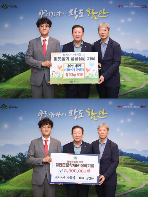 [½Åµ¿¾Æ¹æ¼Û=À̽ŵ¿±âÀÚ]¢ßÀ̳ªÀÎÆÄ¿öÅØ(´ëÇ¥ÀÌ»ç °ø¿µµ·)Àº 26ÀÏ ÇԾȱºÀåÇÐÀç´Ü¿¡ Áö¿ªÀÎÀç À°¼ºÀ» À§ÇÑ ÀåÇбâ±Ý 500¸¸ ¿ø°ú ÇԾȱº ¾î·Á¿î ÀÌ¿ôÀ» µ½±â À§ÇÑ ½Ò(10kg) 50Æ÷(120¸¸ ¿ø »ó´ç)¸¦ ÇԾȱº¿¡ ±âŹÇß´Ù. ±âŹµÈ ½ÒÀº Àú¼Òµæ°èÃþ 50¼¼´ë¿¡ Àü´ÞµÉ ¡¦