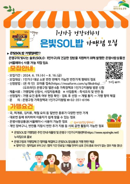 [½Åµ¿¾Æ¹æ¼Û=À̽ŵ¿±âÀÚ]ÀºÆò±¸(±¸Ã»Àå)´Â Àú¼Òµæ ÁßÀå³â 1Àΰ¡±¸¸¦ ´ë»óÀ¸·Î °Ç°­ÇÑ ½Ä»ýȰÀ» Áö¿øÇÏ´Â ¡®ÀººûSOL¹ä¡¯ »ç¾÷¿¡ Âü¿©ÇÒ ¹ÝÂù°¡°Ô °¡¸ÍÁ¡À» ³»´Þ 16ÀϱîÁö ¸ðÁýÇÑ´Ù°í ¹àÇû´Ù. ¡®ÀººûSOL¹ä¡¯Àº ¡®Àº¡¯Æò±¸ÀÇ ¡®ºû¡¯³ª´Â ¡®SOL¡¯O(1Àΰ¡±¸)¿¡°Ô °Ç°­¡¦
