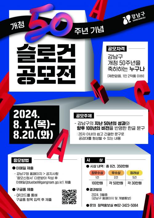 [½Åµ¿¾Æ¹æ¼Û=À̽ŵ¿±âÀÚ]²ÞÀÌ ¸ðÀÌ´Â µµ½Ã, ¹Ì·¡¸¦ ±×¸®´Â °­³²±¸(±¸Ã»Àå Á¶¼º¸í)°¡ °³Ã» 50Áֳ⸦ ±â³äÇϱâ À§ÇØ 8¿ù 1ÀϺÎÅÍ 20ÀϱîÁö Àü ±¹¹Î ´ë»ó ½½·Î°Ç °ø¸ðÀüÀ» °³ÃÖÇÑ´Ù. °­³²±¸´Â 1975³â ±âÁ¸ ¼ºµ¿±¸ ¿µµ¿ÃâÀå¼Ò°¡ ÆóÁöµÇ¸é¼­ ÇàÁ¤±¸¿ªÀ¸·Î ½Å¼³µÆ´Ù. ´Ù°¡¿À¡¦