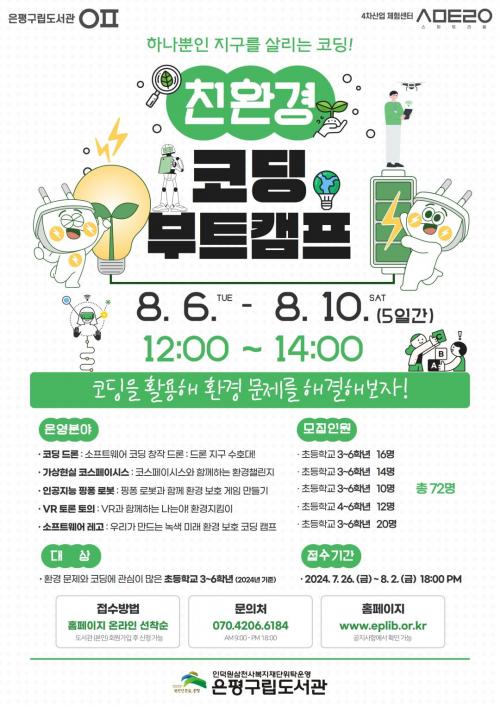 [½Åµ¿¾Æ¹æ¼Û=À̽ŵ¿±âÀÚ] ÀºÆò±¸(±¸Ã»Àå ±è¹Ì°æ)´Â ÀºÆò±¸¸³µµ¼­°ü 4Â÷ »ê¾÷ üÇè¼¾ÅÍ ½º¸¶Æ®¸®¿ò¿¡¼­ ÃʵîÇб³ ¿©¸§¹æÇÐÀ» ¸Â¾Æ ´Ü±â°£¿¡ ÄÚµù Áö½ÄÀ» ±â¸¦ ¼ö ÀÖ´Â ¡®ÄÚµù ºÎÆ® Ä·ÇÁ¡¯¸¦ ¿î¿µÇÑ´Ù°í ¹àÇû´Ù. ¡®ÄÚµù ºÎÆ® Ä·ÇÁ¡¯´Â ³»´Þ 6ÀϺÎÅÍ 10ÀϱîÁö 5Àϰ£ ¿î¿µ¡¦