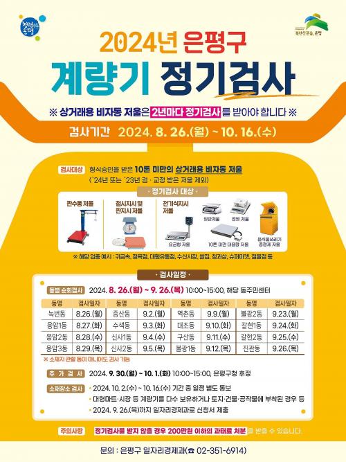 ÀºÆò±¸, 2024³â °è·®±â Á¤±â°Ë»ç ½Ç½Ã¡¦¿À´Â 26ÀϺÎÅÍ