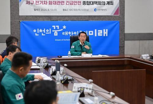 [½Åµ¿¾Æ¹æ¼Û ÀÎõ= À±¹Î½Ä±âÀÚ] ÀÎõ±¤¿ª½Ã´Â 13ÀÏ ½Ãû Àç³­¾ÈÀü»óȲ½Ç¿¡¼­ À¯Á¤º¹ ½ÃÀå ÁÖÀç·Î ½Ã °ü°èºÎ¼­, ¼Ò¹æº»ºÎ, 10°³ ±º¡¤±¸, Çѱ¹Àü±â¾ÈÀü°ø»ç, ÀÎõ´ëÇб³, Çѱ¹ EV±â¼úÀÎÇùȸ ¹× ÀÚµ¿Â÷ ¸íÀå µî À¯°ü±â°ü ¹× Àü¹®°¡°¡ Âü¿©ÇÏ´Â ¼­±¸ Àü±âÂ÷ È­Àç °ü·Ã ¾ÈÀü¡¦
