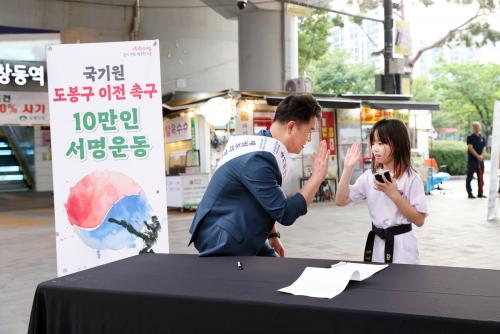 [½Åµ¿¾Æ¹æ¼Û=À̽ŵ¿±âÀÚ] µµºÀ±¸(±¸Ã»Àå ¿À¾ð¼®)°¡ ±¹±â¿ø À¯Ä¡ ¹ü±¸¹Î ¼­¸í¿îµ¿¿¡ ³ª¼± Áö 1°³¿ùµµ Áö³ªÁö ¾Ê¾Æ ¼­¸í Àοø 9¸¸¸íÀ» ³Ñ°å´Ù°í ¹àÇû´Ù. ¾Õ¼­ ±¸´Â ±¹±â¿øÀ» µµºÀ±¸ µµºÀµ¿ È­Çкδë ÀÌÀüºÎÁö(µµºÀµ¿ 438¹øÁö ÀÏ¿ø)·Î À¯Ä¡Çϱâ À§ÇØ Áö³­ 7¿ù 25ÀÏ ¡®±¹¡¦