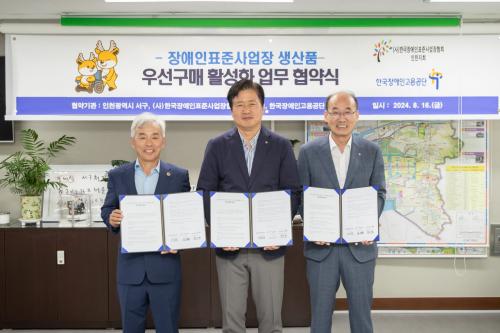 [½Åµ¿¾Æ¹æ¼Û ÀÎõ= À±¹Î½Ä±âÀÚ] ÀÎõ ¼­±¸(±¸Ã»Àå °­¹ü¼®)´Â Áö³­ 16ÀÏ ÀÎõ½Ã ±âÃÊÀÚÄ¡´Üü Áß ÃÖÃÊ·Î (»ç)Çѱ¹Àå¾ÖÀÎÇ¥ÁØ»ç¾÷ÀåÇùȸ ÀÎõÁöȸ(ȸÀå ±è¿µÈÆ), Çѱ¹Àå¾ÖÀΰí¿ë°ø´Ü ÀÎõÁö»ç(Áö»çÀå È«µÎÇ¥)¿Í Àå¾ÖÀÎÇ¥ÁØ»ç¾÷Àå»ý»êǰ ¿ì¼±±¸¸Å Ȱ¼ºÈ­¸¦ À§ÇÑ ¾÷¹« Çù¡¦