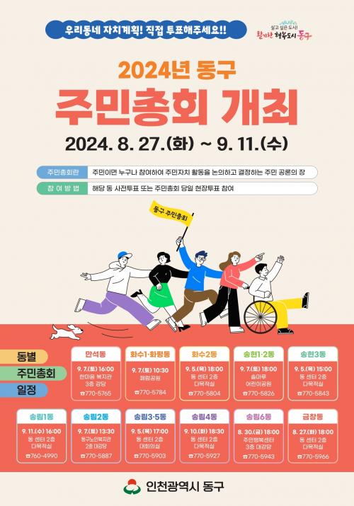 [½Åµ¿¾Æ¹æ¼Û ÀÎõ= À±¹Î½Ä±âÀÚ] ÀÎõ µ¿±¸(±¸Ã»Àå ±èÂùÁø)´Â 2025³â ÁÖ¹ÎÀÚġȸ ÀÚÄ¡ °èȹ ¼ö¸³°ú »ç¾÷ÀÇÁ¦ ¼±Á¤À» À§ÇÑ ÁÖ¹ÎÃÑȸ¸¦ °ü³» 11°³ µ¿¿¡¼­ °³ÃÖÇÑ´Ù°í ¹àÇû´Ù. ÁÖ¹ÎÃÑȸ´Â 8¿ù 27ÀÏ ±Ý⵿À» ½ÃÀÛÀ¸·Î 9¿ù 11ÀϱîÁö 11°³ µ¿º° ÀÏÁ¤¿¡ µû¶ó °¢ µ¿ ÁÖ¹ÎÀÚ¡¦