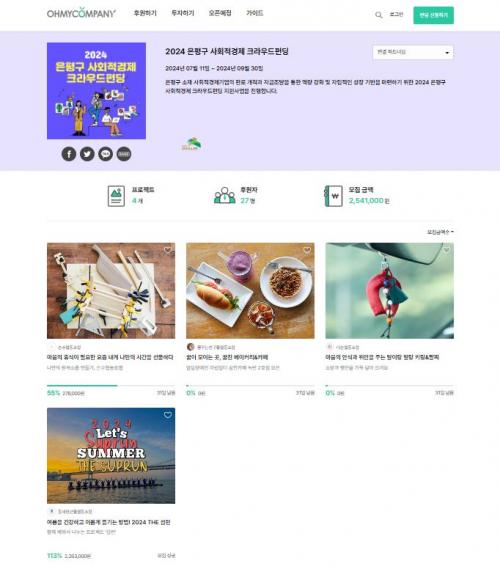 [½Åµ¿¾Æ¹æ¼Û=À̽ŵ¿±âÀÚ]ÀºÆò±¸(±¸Ã»Àå ±è¹Ì°æ)°¡ 2024³â ÀºÆò±¸ »çȸÀû°æÁ¦±â¾÷µéÀÇ ¡®Å©¶ó¿ìµå ÆÝµù¡¯ Àü¿ë°üÀ» ³»´Þ 19ÀϱîÁö ¿î¿µÇÑ´Ù. ¡®Å©¶ó¿ìµå ÆÝµù¡¯À̶õ ´ëÁßÀ» ¶æÇÏ´Â Å©¶ó¿ìµå(Crowd)¿Í Á¶´ÞÀ» ¶æÇÏ´Â ÆÝµù(Funding)À» Á¶ÇÕÇÑ ¿ë¾î·Î, ¿Â¶óÀÎ Ç÷§ÆûÀ» ÀÌ¡¦