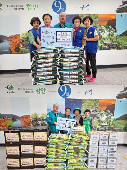 [½Åµ¿¾Æ¹æ¼Û=ÀÌ¿ø¼º±âÀÚ] ÇԾȱº ±ººÏ¸é¿¡ Ãß¼®¸ÂÀÌ ¾î·Á¿î ÀÌ¿ôÀ» À§ÇÑ ±âŹÀÌ À̾îÁö°í ÀÖ´Ù. ±ººÏ¸é ¹Ù¸£°Ô»ì±âÇùÀÇȸ(ȸÀå ÀÌÁ¾¼º)´Â Áö³­ 11ÀÏ ½Ò(10kg) 20Æ÷¸¦ ±âŹÇßÀ¸¸ç,±ººÏ¸é »õ¸¶À»ÇùÀÇȸ¡¤ºÎ³àȸ(ȸÀå ¼ÛÆòÇÑ,Á¶±Í¼ø)´Â ½Ò(10kg) 37Æ÷, ±è¼¼Æ® 37°³, ±èÄ¡ ¡¦