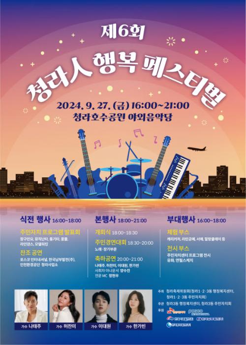 [½Åµ¿¾Æ¹æ¼Û ÀÎõ= À±¹Î½Ä±âÀÚ] û¶óÃàÁ¦À§¿øÈ¸(À§¿øÀå °­¹Ì°æ)°¡ ¿À´Â 9¿ù 27ÀÏ ±Ý¿äÀÏ ¿ÀÈÄ 4½ÃºÎÅÍ Ã»¶óÈ£¼ö°ø¿ø ¾ß¿ÜÀ½¾Ç´ç¿¡¼­ ¡®Á¦6ȸ û¶óÀÎ Çູ Æä½ºÆ¼¹ú¡¯À» °³ÃÖÇÑ´Ù. ¡®Ã»¶óìÑ Çູ Æä½ºÆ¼¹ú¡¯Àº û¶ó1․2․3µ¿ ÇàÁ¤º¹Áö¼¾ÅÍ¿Í ÁÖ¹ÎÀÚġȸ°¡¡¦