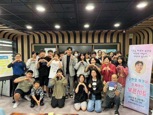 [½Åµ¿¾Æ¹æ¼Û Àü³²ÇÔÆò=À̽ŵ¿±âÀÚ] ÇÔÆòÇØº¸ÁßÇб³(±³Àå ±è¼º¾Ö)´Â Áö³­ 9¿ù 26ÀÏ(¸ñ) ¡®ºÎ½ÃÆÄÀÏ·µ, ³ª´Â ±æÀÌ ¾ø´Â °÷À¸·Î °£´Ù¡¯, ¡®Çൿ·Â ¼ö¾÷¡¯ÀÇ ÀúÀÚÀÌÀÚ ÆÄÀÏ·µ Ãâ½Å µ¿±âºÎ¿© °­¿¬°¡ ¿ÀÇöÈ£ ÀÛ°¡¸¦ ÃÊ´ëÇÏ¿© ºÏÄܼ­Æ®¸¦ °³ÃÖÇÏ¿´´Ù. ¿ÀÇöÈ£ ÀÛ°¡´Â À̹ø ¡¦