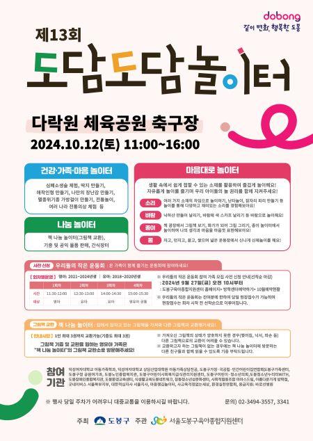 [½Åµ¿¾Æ¹æ¼Û µµºÀ±¸=À̽ŵ¿±âÀÚ] µµºÀ±¸(±¸Ã»Àå ¿À¾ð¼®)´Â 10¿ù 12ÀÏ ¿ÀÀü 11½ÃºÎÅÍ ¿ÀÈÄ 4½Ã±îÁö ´Ù¶ô¿ø üÀ°°ø¿ø Ã౸Àå(¸¶µé·Î 932)¿¡¼­ ±¸ ´ëÇ¥ À°¾ÆÃàÁ¦ ¡¸µµ´ãµµ´ã ³îÀÌÅÍ¡¹¸¦ °³ÃÖÇÑ´Ù. ¿ÃÇØ·Î Á¦13ȸ¸¦ ¸ÂÀº ¡¸µµ´ãµµ´ã ³îÀÌÅÍ¡¹´Â µµºÀ±¸°¡ ÁÖÃÖÇÏ°í µµºÀ±¸¡¦