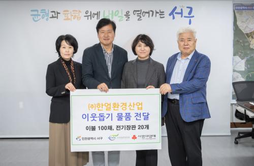 [½Åµ¿¾Æ¹æ¼Û ÀÎõ= À±¹Î½Ä±âÀÚ] ÀÎõ ¼­±¸(±¸Ã»Àå °­¹ü¼®)´Â Áö³­ 10¿ù 23ÀÏ, ¢ßÇѾóȯ°æ»ê¾÷(´ëÇ¥ ÀåºÀ¼ø)À¸·ÎºÎÅÍ ÀÌ¿ôµ½±â ¹°Ç°(ÀÌºÒ 100ä ¹× Àü±âÀåÆÇ 20°³)¸¦ Àü´Þ¹Þ¾Ò´Ù. ¢ßÇѾóȯ°æ»ê¾÷Àº ¿©¼º¿ëǰ ¹× ÁÖ¹æ¿ëǰ, ¾î¸£½ÅµéÀ» À§ÇÑ ¸¶½ºÅ©(1,000¸¸¿ø »ó´ç¡¦
