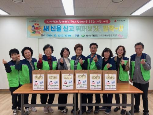 [½Åµ¿¾Æ¹æ¼Û ÀÎõ= À±¹Î½Ä±âÀÚ] ÀÎõ µ¿±¸ È­¼ö1‧È­Æòµ¿ Áö¿ª»çȸº¸ÀåÇùÀÇü(¹Î°£À§¿øÀå ½Å±â¿ì)´Â °ü³» Àå¾Ö¾Æµ¿(12¼¼¹Ì¸¸)¿¡°Ô ²Þ°ú Èñ¸ÁÀ» ´ãÀº ¿îµ¿È­¸¦ Áö¿øÇß´Ù°í ¹àÇû´Ù. Áö¿ª»çȸº¸ÀåÇùÀÇü À§¿øµéÀÌ ¸ð±ÝÇÑ ±Ý¾×À¸·Î ÁøÇàµÈ À̹ø »ç¾÷Àº °ü³» Àå¾Ö¡¦