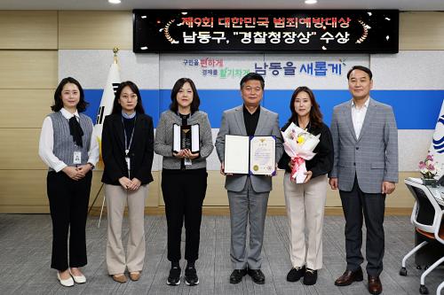 [½Åµ¿¾Æ¹æ¼Û ÀÎõ= À±¹Î½Ä±âÀÚ] ÀÎõ½Ã ³²µ¿±¸´Â ¡®Á¦9ȸ ´ëÇѹα¹ ¹üÁË¿¹¹æ´ë»ó¡¯¿¡¼­ »çȸÀû¾àÀÚ º¸È£ ºÐ¾ß ¿ì¼ö °ø°ø±â°üÀ¸·Î ¼±Á¤µÅ °æÂûûÀå»óÀ» ¼ö»óÇß´Ù°í 1ÀÏ ¹àÇû´Ù. °æÂûû°ú Áß¾ÓÀϺ¸°¡ °øµ¿ ÁÖ°üÇÏ´Â ¡®´ëÇѹα¹ ¹üÁË¿¹¹æ´ë»ó¡¯Àº Áö¿ª»çȸ ¹üÁË¿¹¹æ¡¦