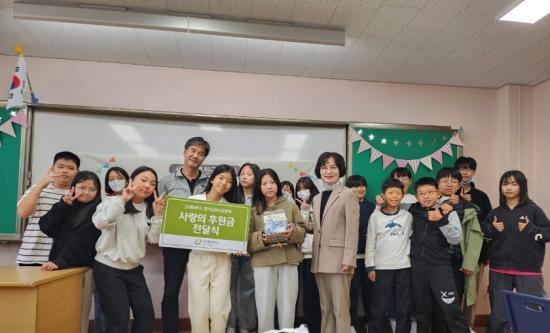 [½Åµ¿¾Æ¹æ¼Û ÀÎõ= À±¹Î½Ä±âÀÚ] ±Â³×À̹ö½º °æ±â³²ºÎ»ç¾÷º»ºÎ(º»ºÎÀå ¾çÀç¸í)´Â ½Å¿ùÃʵîÇб³(±³Àå ÇÑÁö¿ø)¿Í ÇÔ²² »ç¶ûÀÇ ÈÄ¿ø±Ý Àü´Þ½ÄÀ» ÁøÇàÇß´Ù°í 1ÀÏ ¹àÇû´Ù. ½Å¿ùÃʵîÇб³¿¡¼­´Â ÇлýÀÚġȸ°¡ ±âȹÇϰí Àü±³»ýÀÌ Âü¿©ÇÑ ¾Ë¶ãÀåÅÍ Çà»ç¸¦ ÅëÇØ ÀÚÀ²ÀûÀ¸·Î ¸ðÀÎ ¡¦