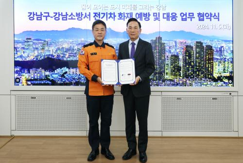 [½Åµ¿¾Æ¹æ¼Û °­³²±¸=À̽ŵ¿±âÀÚ] ²ÞÀÌ ¸ðÀÌ´Â µµ½Ã, ¹Ì·¡¸¦ ±×¸®´Â °­³²±¸°¡ 5ÀÏ ±¸Ã»¿¡¼­ °­³²¼Ò¹æ¼­(¼­Àå ±èÈï°ï)¿Í Àü±âÂ÷ È­Àç ¿¹¹æ ¹× ´ëÀÀÀ» À§ÇØ Çù¾àÀ» ü°áÇß´Ù. ¾ç ±â°üÀº ÃÖ±Ù ÀÕµû¸¥ Àü±âÂ÷ È­Àç »ç°í¿¡ ´ëÇÑ °øµ¿ ´ëÀÀÀÇ Çʿ伺À» ÀνÄÇϰí, 8¿ùºÎÅÍ Áö¡¦