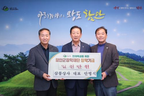 [½Åµ¿¾Æ¹æ¼Û °æ³²ÇÔ¾È=À̽ŵ¿±âÀÚ] »ïºÀ»ó»ç ¾Èº´½Ä ´ëÇ¥´Â Áö³­ 7ÀÏ Áö¿ªÀÎÀç À°¼ºÀ» À§ÇÑ ÀåÇбâ±Ý 1000¸¸ ¿øÀ» ÇԾȱºÀåÇÐÀç´Ü¿¡ ±âŹÇß´Ù. ÇÔ¾È °¡¾ßÀ¾ Ãâ½ÅÀÎ ¾Èº´½Ä ´ëÇ¥´Â ¡°¾î·Á¿î ½Ã±â¿¡ °íÇâÀÇ ÇлýµéÀÌ Èñ¸ÁÀ» ÀÒÁö ¾Ê°í °Ç°­ÇÑ »çȸ±¸¼º¿øÀ¸·Î ¼ºÀåÇϱ桦