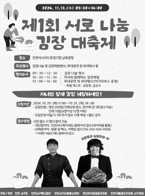 [½Åµ¿¾Æ¹æ¼Û ÀÎõ= À±¹Î½Ä±âÀÚ] ÀÎõ ¼­±¸(±¸Ã»Àå °­¹ü¼®)´Â 13ÀÏ ÀÎõ¾Æ½Ã¾Æµå ÁÖ°æ±âÀå ³²Ãø±¤Àå¿¡¼­ ¼­±¸¹Î 1,500 ¿©¸íÀÌ Âü¼®ÇÑ °¡¿îµ¥ ¡®Á¦1ȸ ¼­·Î ³ª´® ±èÀå ´ëÃàÁ¦¡¯¸¦ °³ÃÖÇß´Ù°í ¹àÇû´Ù. Áö³­ 3¿ù ¼­±¸º¹ÁöÀç´Ü Ãâ¹ü ÀÌÈÄ Ã³À½ ÁøÇàµÈ À̹ø Çà»ç´Â ¸Å³â¡¦