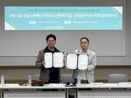 [½Åµ¿¾Æ¹æ¼Û ½ÃÈï½Ã=À̽ŵ¿±âÀÚ] (Àç)½ÃÈï½Ãû¼Ò³âÀç´ÜÀÇ ÀºÇàû¼Ò³â¹®È­ÀÇÁýÀº Áö³­ 12ÀÏ ÀºÇൿ ÁÖ¹ÎÀÚġȸ¿Í ½ÃÈï½Ã û¼Ò³âÀÇ °Ç°­ÇÑ ¼ºÀåÀ» Áö¿øÇÏ°í »ç¾÷ ¿î¿µÀÇ »óÈ£ È¿À²È­¸¦ À§ÇØ ¾÷¹«Çù¾àÀ» ü°áÇß´Ù. Çù¾à½ÄÀº ÀºÇൿ ÇàÁ¤º¹Áö¼¾ÅÍ ´ë°­´ç¿¡¼­ ÁøÇàµÆÀ¸¸ç,¡¦