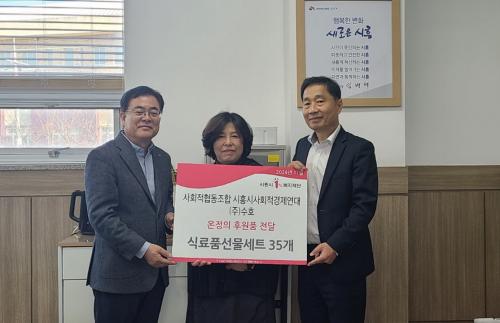 [½Åµ¿¾Æ¹æ¼Û ½ÃÈï½Ã=À̽ŵ¿±âÀÚ] »çȸÀûÇùµ¿Á¶ÇÕ ½ÃÈï½Ã»çȸÀû°æÁ¦¿¬´ë¿¡ ¼Ò¼ÓµÈ »çȸÀû ±â¾÷ ¢ß¼öÈ£°¡ Áö³­ 13ÀÏ ½Åõµ¿ ÇàÁ¤º¹Áö¼¾Å͸¦ ¹æ¹®ÇØ ½Ä·áǰ ¼±¹° ¼¼Æ® 35°³(100¸¸ ¿ø »ó´ç)¸¦ Àü´ÞÇß´Ù. ½ÃÈï½Ã»çȸÀû°æÁ¦¿¬´ë¿¡´Â ÇöÀç °ü³» 46°³ÀÇ »çȸÀû ±â¾÷ÀÌ ÇÔ²² Ȱ¡¦