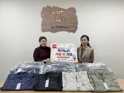 [½Åµ¿¾Æ¹æ¼Û Çϳ²½Ã=À̽ŵ¿±âÀÚ] Áö³­ 11¿ù 15ÀÏ, ¢ßÇ÷¹ÀÌÅõ°Ô´õ°¡ Çϳ²½ÃÁ¾ÇÕ»çȸº¹Áö°ü¿¡ °Ü¿ï¿Ê 66¹ú(250¸¸ ¿ø »ó´ç)À» Àü´ÞÇß´Ù. ¢ßÇ÷¹ÀÌÅõ°Ô´õ´Â 2020³âºÎÅÍ ¸Å³â Çϳ²½ÃÁ¾ÇÕ»çȸº¹Áö°üÀ» ÅëÇØ ½Ò, ¸¶½ºÅ©, À̺Ò, ÀÇ·ù µîÀÇ ´Ù¾çÇÑ ¹°Ç°À» ÈÄ¿øÇϸç Áö¿ª»çȸ¡¦