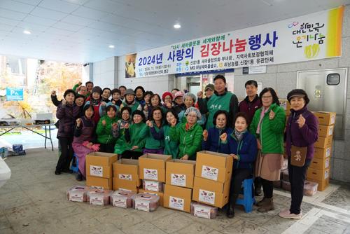 [½Åµ¿¾Æ¹æ¼Û Çϳ²½Ã=À̽ŵ¿±âÀÚ] Çϳ²½Ã ½ÅÀå1µ¿ »õ¸¶À»ÇùÀÇȸ¡¤ºÎ³àȸ, Áö¿ª»çȸº¸ÀåÇùÀÇü´Â Áö³­ 19, 20ÀÏ ÀÌÆ²°£ ½ÅÀå1µ¿ ÇàÁ¤º¹Áö¼¾ÅÍ¿¡¼­ »ç¶ûÀÇ ±èÀå±èÄ¡ 300Æ÷±â¸¦ Á¤¼º½º·´°Ô ´ã°¡ Ãë¾à°èÃþ 70°¡±¸¿¡ Àü´ÞÇß´Ù°í ¹àÇû´Ù. À̹ø »ç¶ûÀÇ ±èÀ峪´® Çà»ç´Â Áö¡¦