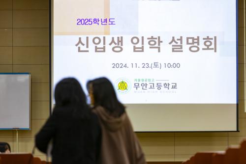 [½Åµ¿¾Æ¹æ¼Û Àü³²¹«¾È=À̽ŵ¿±âÀÚ] Áö³­ 11¿ù 23ÀÏ(Åä) ¿ÀÀü 10½Ã, ¹«¾È°íµîÇб³(±³Àå ¾çȸ·æ) ½Ãû°¢½Ç¿¡¼­ ¿­¸° 2025Çг⵵ ½ÅÀÔ»ý ÀÔÇм³¸íȸ°¡ Çлý°ú Çкθð ¾à 150¸íÀÌ Âü¼®ÇÑ °¡¿îµ¥ ¼ºÈ²¸®¿¡ ¸¶¹«¸®µÆ´Ù. À̳¯ ¼³¸íȸ¿¡¼­´Â 2022 °³Á¤ ±³À°°úÁ¤°ú °í±³ÇÐÁ¡Á¦¸¦¡¦
