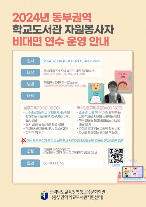 [½Åµ¿¾Æ¹æ¼Û Àü³²=À̽ŵ¿±âÀÚ] Àü¶ó³²µµ±³À°Ã»Çлý±³À°¹®È­È¸°üÀº ¿À´Â 12¿ù 13ÀÏ, µ¿ºÎ±Ç¿ª 7°³ Áö¿ª(¿©¼ö, ¼øÃµ, ±¤¾ç, °íÈï, º¸¼º, ±¸·Ê, °î¼º) Çб³µµ¼­°ü ÀÚ¿øºÀ»çÀÚ¸¦ ´ë»óÀ¸·Î ºñ´ë¸é ¿¬¼ö¸¦ ¿î¿µÇÑ´Ù. À̹ø ¿¬¼ö´Â »ó¹Ý±â(4¿ù) Áö¿ªº° ´ë¸é ¿¬¼ö¿¡ À̾î ÇС¦