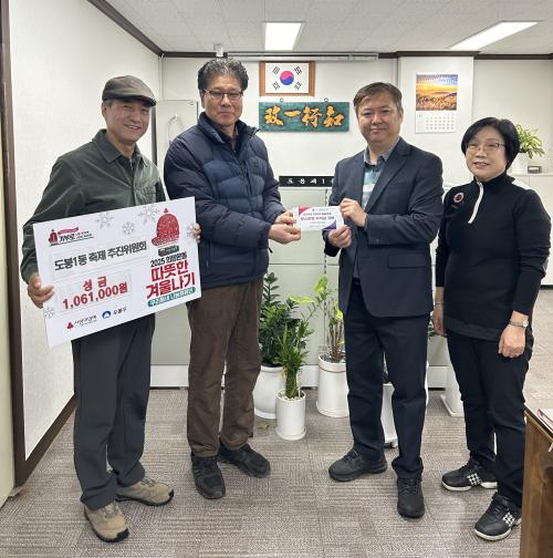 [½Åµ¿¾Æ¹æ¼Û µµºÀ±¸=À̽ŵ¿±âÀÚ] µµºÀ±¸ µµºÀ1µ¿ÀÌ Áö³­ 11¿ù 27ÀÏ µµºÀ1µ¿ ÃàÁ¦ÃßÁøÀ§¿øÈ¸·ÎºÎÅÍ µû¶æÇÑ °Ü¿ï³ª±â ¼º±Ý 1,061,000¿øÀ» ±âºÎ¹Þ¾Ò´Ù°í ¹àÇû´Ù. À̹ø ¼º±ÝÀº µµºÀ1µ¿ ¸¶À»ÃàÁ¦ ºÎ½º ¿î¿µ¿¡ µû¸¥ ¼öÀͱÝÀ¸·Î ¸¶·ÃµÅ ±× Àǹ̰¡ ´õÇß´Ù. À̳¯ Àü´Þ½ÄÀº ¼º±Ý¡¦