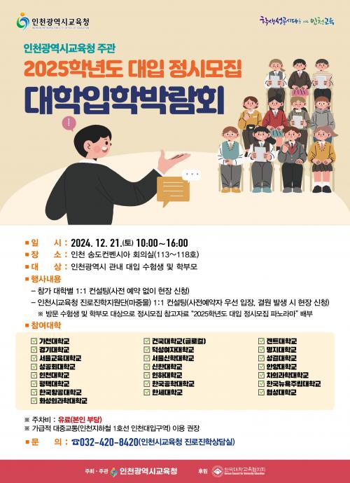 [½Åµ¿¾Æ¹æ¼Û ÀÎõ= À±¹Î½Ä±âÀÚ]ÀÎõ±¤¿ª½Ã±³À°Ã»(±³À°°¨ µµ¼ºÈÆ)Àº ¿À´Â 21ÀÏ ¼ÛµµÄÁº¥½Ã¾Æ¿¡¼­ ¡®2025Çг⵵ ´ëÀÔ Á¤½Ã¸ðÁý ´ëÇÐ ÀÔÇйڶ÷ȸ¡¯¸¦ ½Ç½ÃÇÑ´Ù. À̹ø ¹Ú¶÷ȸ´Â ¼öÇè»ý°ú ÇÐºÎ¸ð¿¡°Ô Á¤½Ã¸ðÁý ÁøÇÐ Á¤º¸¸¦ Á¦°øÇϱâ À§ÇØ ¸¶·ÃµÆ´Ù. ÁÖ¿ä ÇÁ·Î±×·¥Àº ¡âÀΡ¦