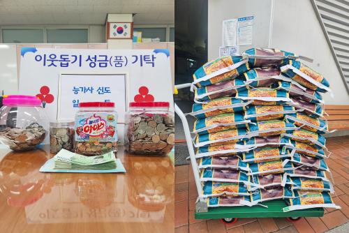 [½Åµ¿¾Æ¹æ¼Û °æ³²ÇÔ¾È=À̽ŵ¿±âÀÚ] ÇԾȱº Ä¥¼­¸é ¼ÒÀç ´É°¡»ç ½Åµµ Àϵ¿Àº ¿¬¸»À» ¸Â¾Æ °ü³» ¾î·Á¿î ÀÌ¿ô¿¡°Ô Àü´ÞÇØ ´Þ¶ó¸ç ¹é¹Ì 200kg(52¸¸ ¿ø »ó´ç)°ú Çö±Ý 97¸¸ ¿øÀ» Ä¥¼­¸é»ç¹«¼Ò¿¡ ±âŹÇß´Ù. À̹ø¿¡ ±âŹµÈ ¹é¹Ì´Â ½ÅµµµéÀÇ ¿ÂÁ¤À¸·Î ¸¶·ÃµÆÀ¸¸ç, Çö±ÝÀº ¿Ã ÇÑÇØ¡¦