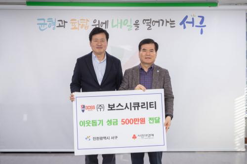 [½Åµ¿¾Æ¹æ¼Û ÀÎõ= À±¹Î½Ä±âÀÚ]ÀÎõ ¼­±¸(±¸Ã»Àå °­¹ü¼®)´Â 12¿ù 5ÀÏ, º¸½º½ÃÅ¥¸®Æ¼(ÁÖ)(´ëÇ¥ÀÌ»ç °øº´¼®)·ÎºÎÅÍ ÀÌ¿ôµ½±â ¼º±Ý 500¸¸¿øÀ» Àü´Þ¹Þ¾Ò´Ù°í ¹àÇû´Ù. º¸½º½ÃÅ¥¸®Æ¼(ÁÖ)´Â ÀÎõ ¹ÌÃßȦ±¸¿¡ º»»ç°¡ À§Ä¡Çϸç, ÀÎõ ¼­±¸¿¡µµ »ç¾÷ÀåÀ» µÎ°í ÀÖ´Ù. Á¤º¸Åë½Å¡¦