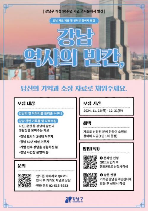 [½Åµ¿¾Æ¹æ¼Û °­³²±¸=À̽ŵ¿±âÀÚ] ²ÞÀÌ ¸ðÀÌ´Â µµ½Ã, ¹Ì·¡¸¦ ±×¸®´Â °­³²±¸°¡ °³Ã» 50³â(2025.10.1.)À» ¸Â¾Æ °­³²ÀÇ ¿ª»ç¿Í ¹®È­¸¦ Áý´ë¼ºÇÑ ¿ª»ç¹®È­¼­¸¦ Á¦ÀÛÇÑ´Ù. À̸¦ À§ÇØ °­³²°ú °ü·ÃµÈ ±â·Ï¹°°ú ¿¾ À̾߱⸦ µé·ÁÁÙ ÁֹΠÂü°¡ÀÚ¸¦ 12¿ù 31ÀϱîÁö ¸ðÁýÇÏ¸ç ¿¾ Àڷᡦ