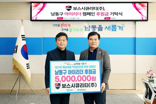 [½Åµ¿¾Æ¹æ¼Û ÀÎõ= À±¹Î½Ä±âÀÚ]ÀÎõ½Ã ³²µ¿±¸´Â ÃÖ±Ù º¸½º½ÃÅ¥¸®Æ¼ ÁÖ½Äȸ»ç·ÎºÎÅÍ ³²µ¿±¸ Àú¼Òµæ ¾Æµ¿ÀÇ Çо÷ Áö¿øÀ» À§ÇØ ÈÄ¿ø±Ý 500¸¸ ¿øÀ» ±âŹ¹Þ¾Ò´Ù°í 12ÀÏ ÀüÇß´Ù. º¸½º½ÃÅ¥¸®Æ¼(ÁÖ)´Â ¹«Àΰæºñ½Ã½ºÅÛ ¿ë¿ª ¾÷ü·Î, »çȸ°øÇåÀÇ Çϳª·Î ÀÛ³âºÎÅÍ ³²µ¿±¸¿¡ ³ª¡¦