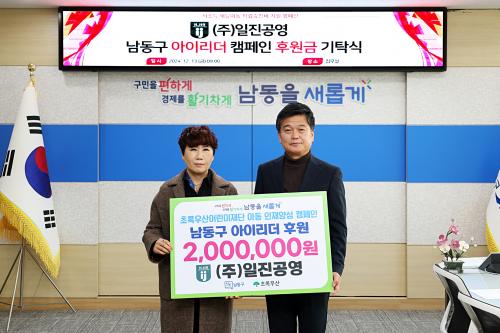 [½Åµ¿¾Æ¹æ¼Û ÀÎõ= À±¹Î½Ä±âÀÚ] ÀÎõ½Ã ³²µ¿±¸´Â ÁÖ½Äȸ»ç ÀÏÁø°ø¿µÀ¸·ÎºÎÅÍ ³²µ¿±¸ ÀÎÀç ¾ç¼ºÀ» À§ÇÑ ¾Æµ¿ Çо÷ÁõÁøºñ ¸ð±Ý Ä·ÆäÀÎ ¡®³²µ¿±¸ ¾ÆÀ̸®´õ¡¯ ¼º±Ý 2¹é¸¸ ¿øÀ» ±âŹ¹Þ¾Ò´Ù°í 16ÀÏ ÀüÇß´Ù. ¡®³²µ¿±¸ ¾ÆÀ̸®´õ¡¯´Â ÀáÀç·ÂÀ» °¡Áø ³²µ¿±¸ ¾Æµ¿․û¼Ò³â¡¦