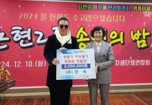 [½Åµ¿¾Æ¹æ¼Û ÀÎõ= À±¹Î½Ä±âÀÚ] ÀÎõ½Ã ³²µ¿±¸ ³íÇö2µ¿ ÇàÁ¤º¹Áö¼¾ÅÍ ¡®¢ß¹Î¼Ó¡¯À¸·ÎºÎÅÍ 300¸¸ ¿øÀ» ±âŹ¹Þ¾Ò´Ù°í 16ÀÏ ¹àÇû´Ù. ¹Ú±Ý¹è ´ëÇ¥´Â ¡°³¯¾¾°¡ Ãß¿öÁö´Ù º¸´Ï °æÁ¦ÀûÀ¸·Î Èûµç ºÐµéµµ µû¶æÇϰí ÇູÇÑ °Ü¿ïÀ» º¸³ÂÀ¸¸é ÁÁ°Ú´Ù´Â »ý°¢¿¡ ¸¶À½À» º¸ÅÂ°í ½Í¡¦